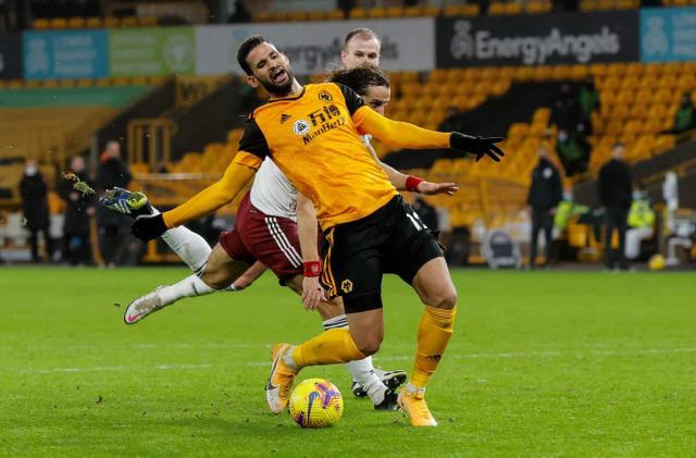 不过就在枪手看似稳操胜券之际,场上却风云突变。上半场补时阶段,威廉·若泽在禁区内和身后盯防他的大卫·路易斯双双倒地,主裁判判罚点球,并向路易斯出示了红牌。慢动作显示,若泽在跑动时脚后跟和身后路易斯的膝盖相撞。随后狼队这边由鲁本·内维斯点球扳平比分。